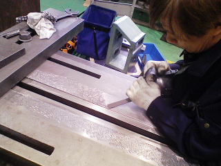 スピニングマシンのベットに キサゲ作業を行っています。 |