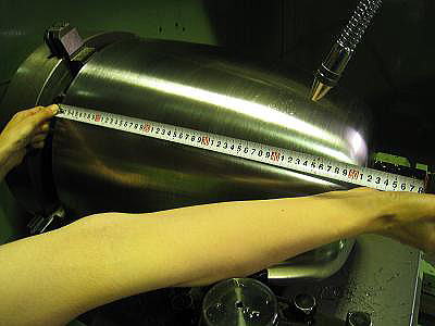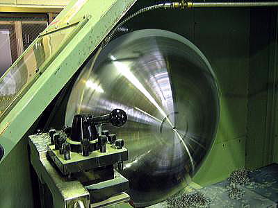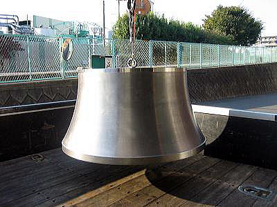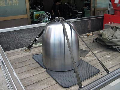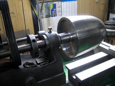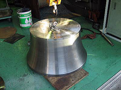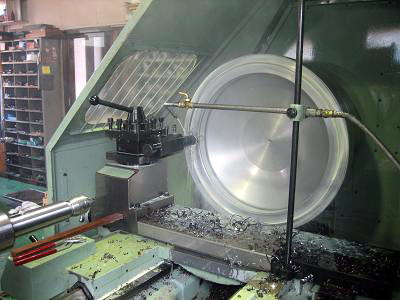納品の際、スピニングマシンへの取付け作業をお手伝い致しました。 型が大きく、形状も丸みを帯びているため、取付けには一手間 かかるものですが、型を軽量化したので、マシンに簡単に取り付ける ことができました。 こちらのスピニングマシンも私共の製作によるものです。 |