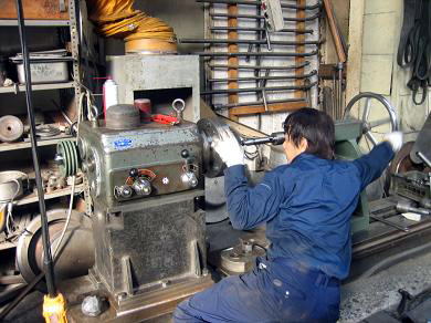 | 芯押し台を新規に取り付け、主軸の芯出しを行っています。 | ||